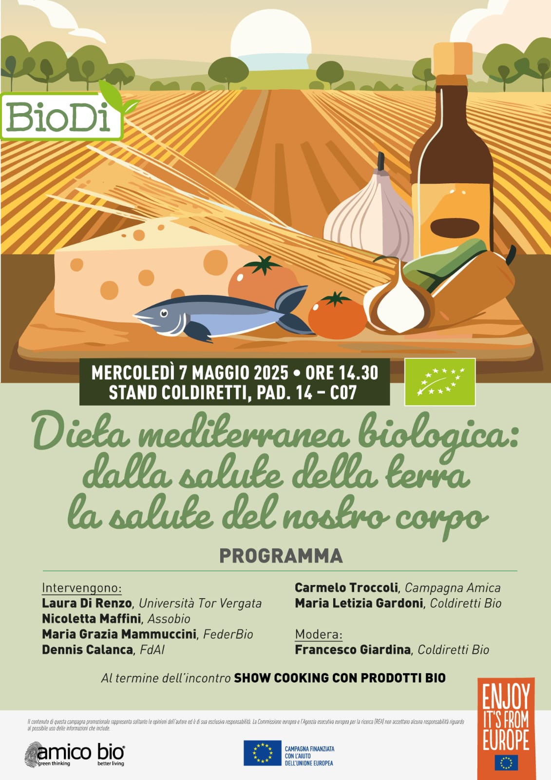 Mercoledì 7 maggio 2025 alle ore 14.30 allo stand della Coldiretti presso BIODI’ la Fiera della Biodiversità Alimentare si terrà il convegno dal titolo: “Dieta mediterranea biologica: dalla salute della terra la salute del nostro corpo”.